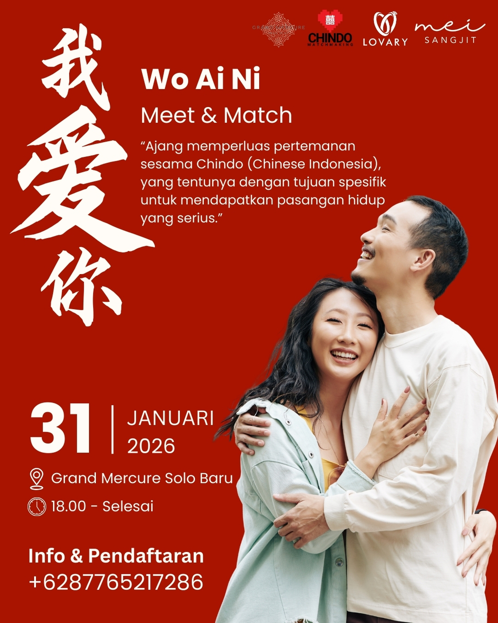 Acara yang diselenggarakan oleh Chindo Match Making bekerja sama dengan Grand Mercure Hotel Solo Baru, dan disponsori oleh Mei Sangjit (@meicollections.sangjit) dan Lovary.
